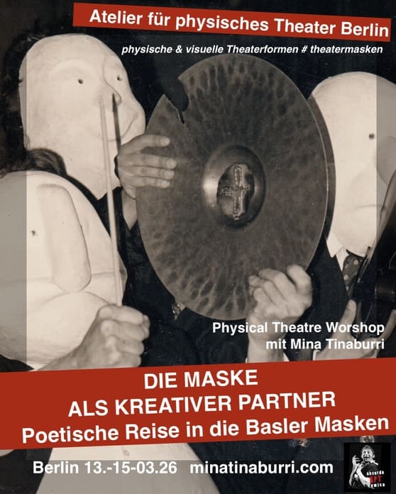 Tauche ein in eine intensive Erfahrung aus Bewegung, Spiel und szenischer Poesie mit den Basler Masken, die erst durch den Körper lebendig und kraftvoll werden. Ihre essenziellen, nicht-naturalistischen Züge setzen das gesprochene Wort außer Kraft und befreien die Träger*innen von starren Mustern und Gewohnheiten, wodurch ein direkter, körperlicher Zugang zur szenischen Gestaltung entsteht.